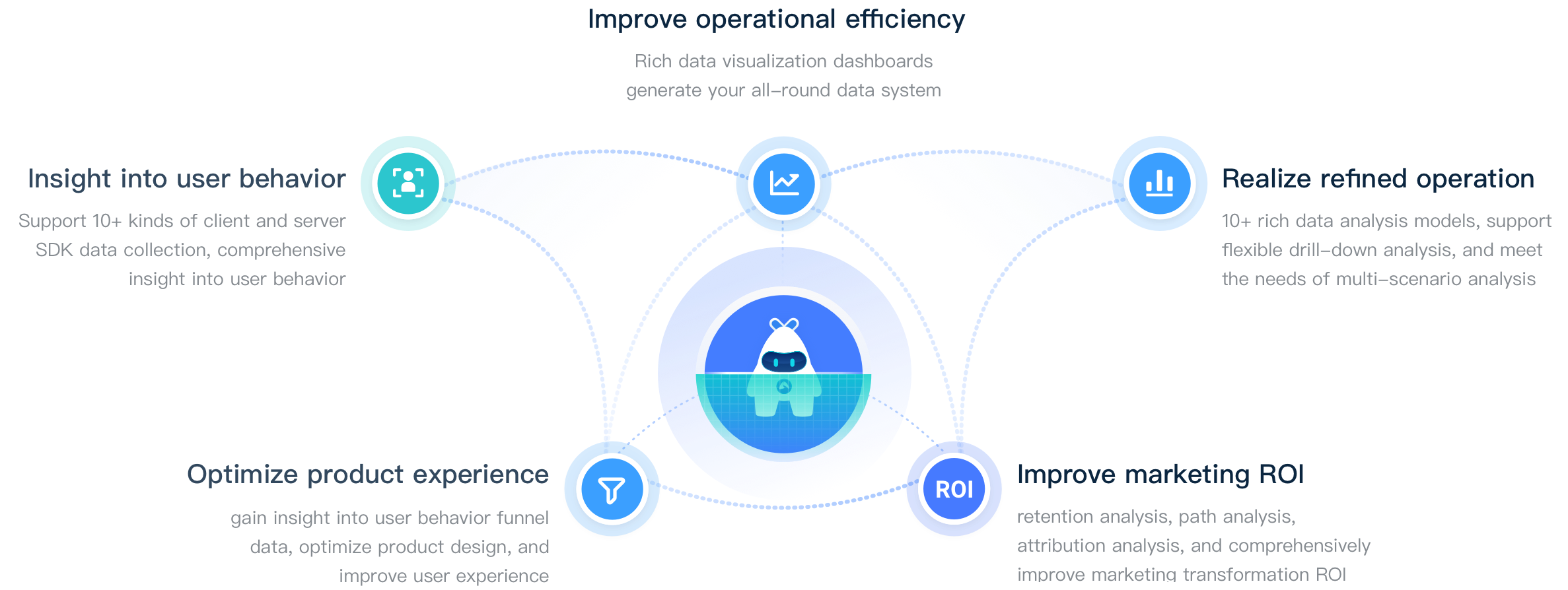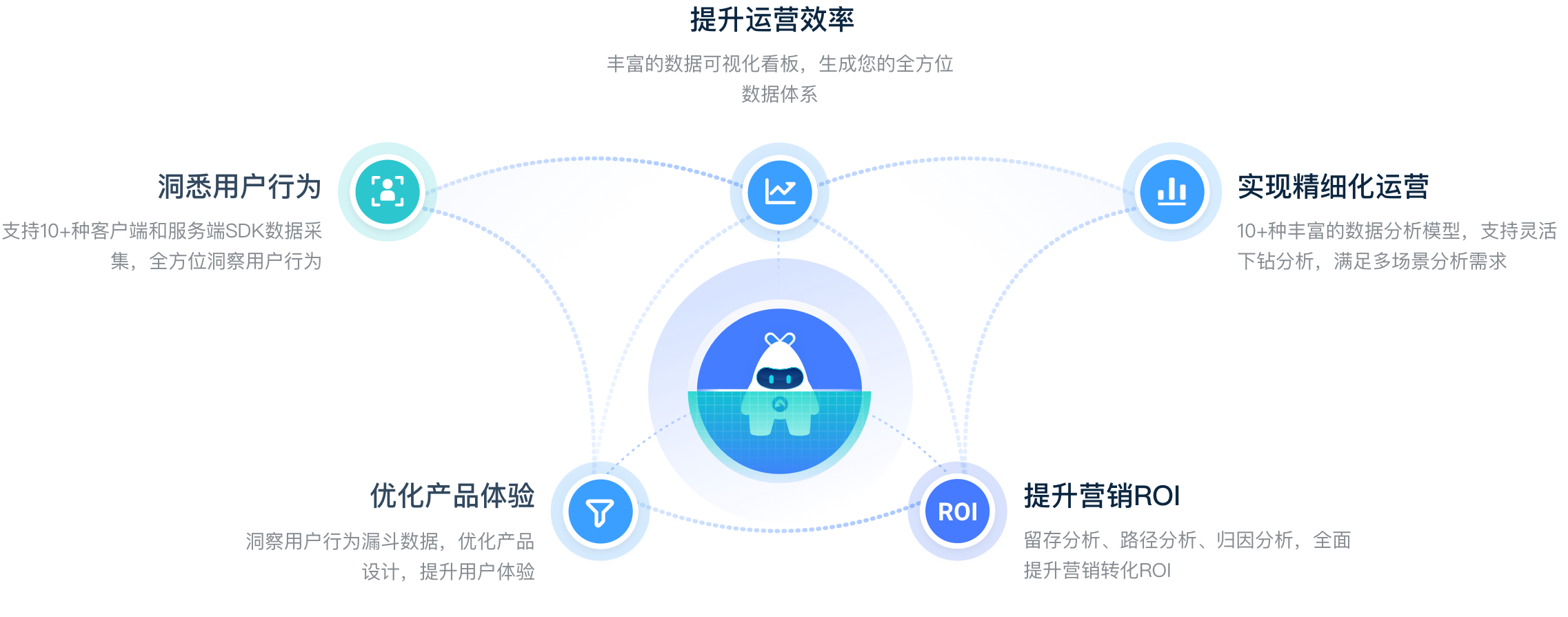 - 支持APP、Web、小程序、H5、服务端等10余种多端数据全面采集