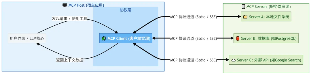 它解决的问题:LLM 本身不自带你的业务数据与系统能力;没有统一接口会导致每个项目重复对接、难迁移、难治理。