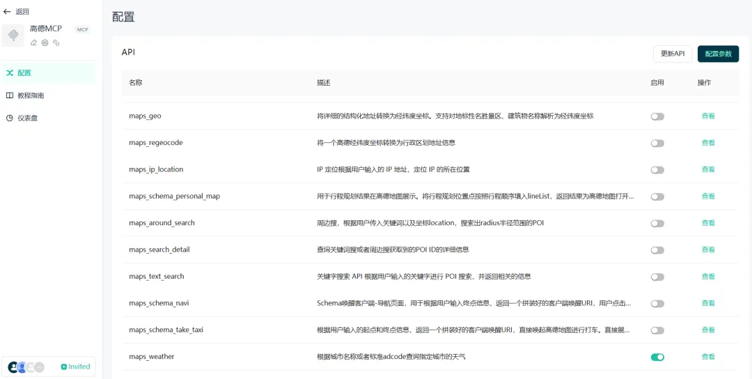 根据需要选择需要使用的Server,这里只保留查询天气的Server。