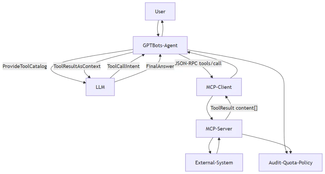 GPTBots中MCP工作流程如下图:
