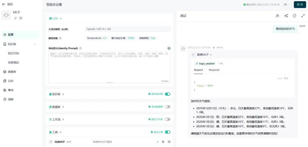 在GPTBots的Agent中添加MCP,并使用。