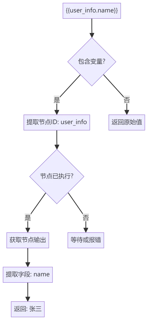 (2)变量解析:将 {{nodeId.field}}替换为实际值