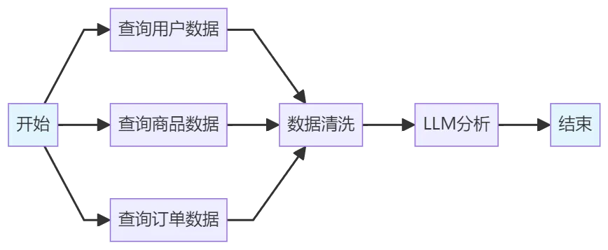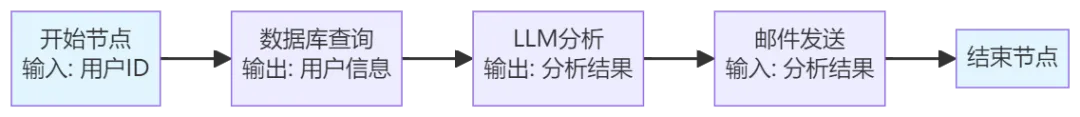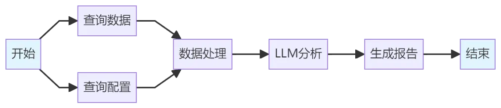 开始 → 查询数据库(本周客户数据) → LLM分析(生成洞察) → 数据可视化 → 生成PDF → 邮件发送 → 结束