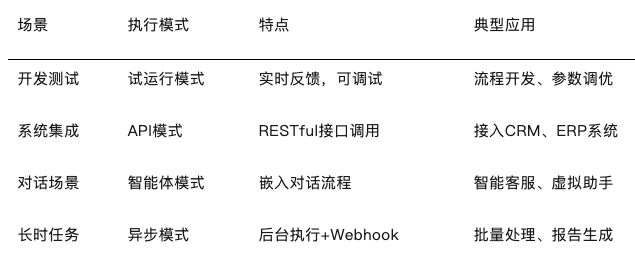 工作流支持多种执行模式,适应不同场景:
