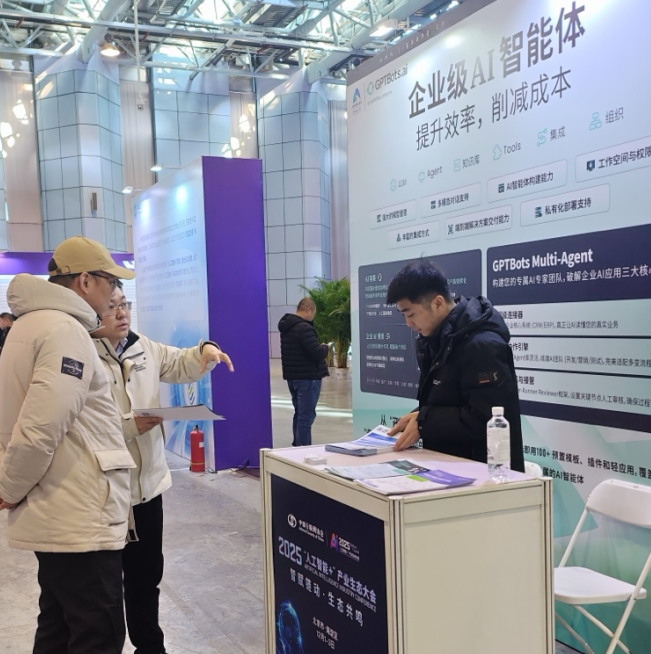 大会期间,极光还在现场设立了专属展位,全方位展示了包括 GPTBots 在内的 AI 产品矩阵及解决方案。展位吸引了众多行业专家、企业代表及媒体的驻足咨询。极光团队与参会嘉宾就如何利用 AI 技术降本增效、构建企业级智能体应用等话题进行了深入交流,现场气氛热烈。