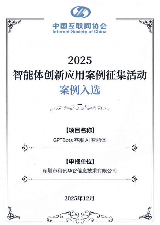 据主办方发布数据显示,本次“2025年智能体创新应用案例征集活动”自10月发起后,共收到200余份申报项目。经专家评审,最终筛选出80个在技术创新性、模式创新性及应用实效性方面表现突出的案例。极光旗下的“GPTBots 客服 AI 智能体”成功通过评审,获颁“2025智能体创新应用案例”证书。这一奖项不仅是对 GPTBots 技术实力的权威认证,也标志着极光在利用 AI Agent(智能体)技术解决企业实际痛点、提升服务效率方面走在了行业前列。