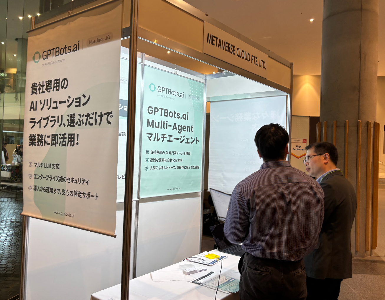展会期间,GPTBots展位吸引了北海道大学、静冈大学、千叶工业大学等多所高校的信息化负责人前来交流。部分高校代表分享了他们在生成式AI探索方面的经验,并对AI Agent在提升校园服务效率和管理水平方面的潜力表示关注。