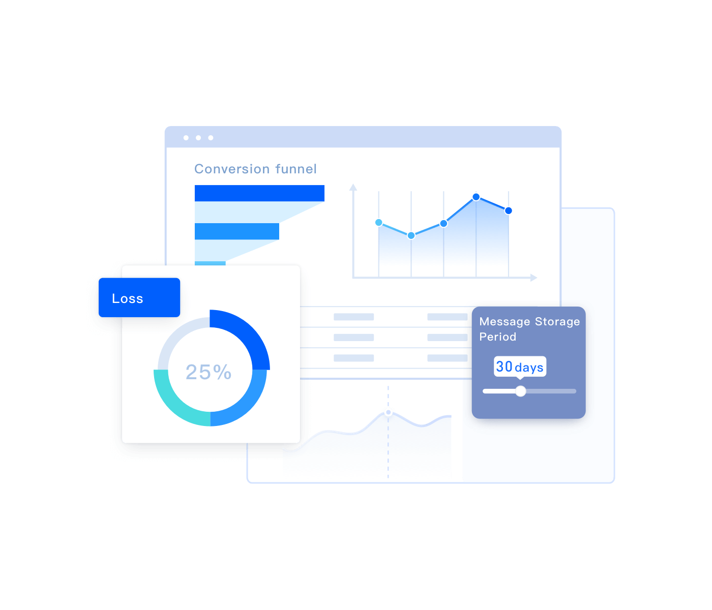 提供数据概览、消息统计、请求量统计、分布统计等多个数据报表,全链路记录消息生命周期。