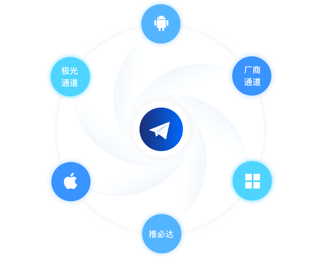 极光通道和厂商通道下发策略灵活配置,服务器支持每秒数百万级消息下发,毫秒级触达终端用户